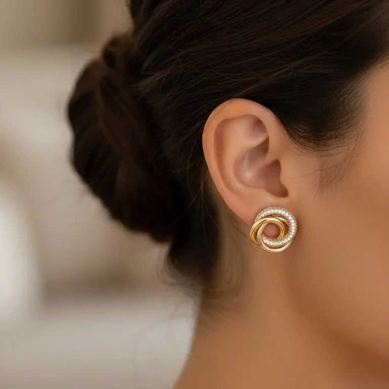 Intertwined Gold and Diamond Stud