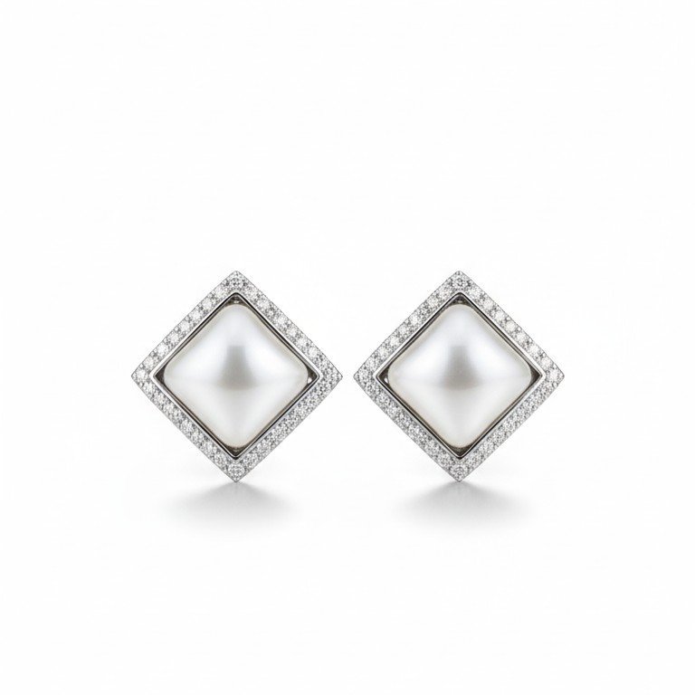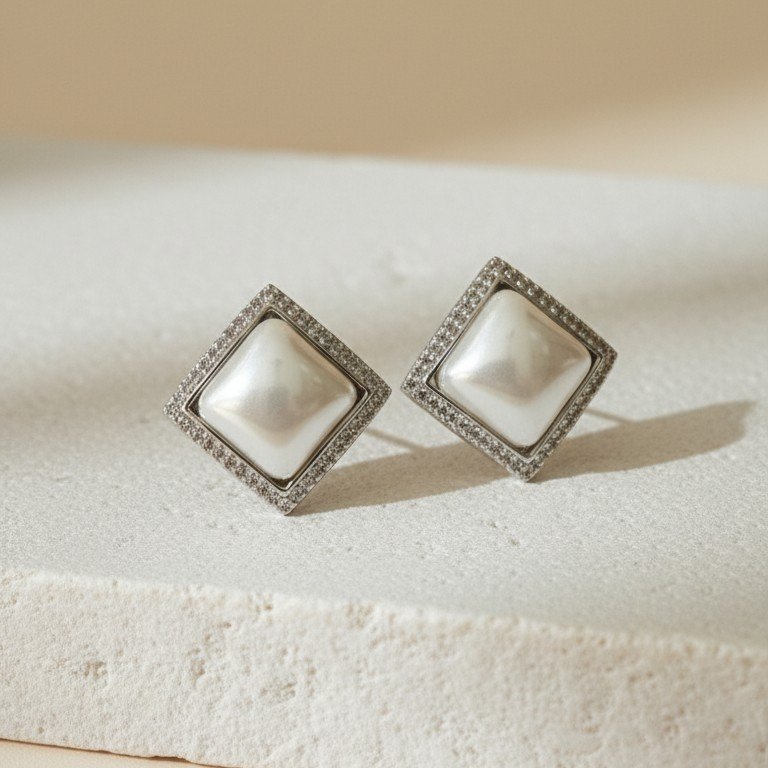 White Pearl Cushion Earing  199.00 Taxes included.