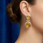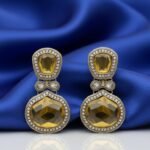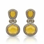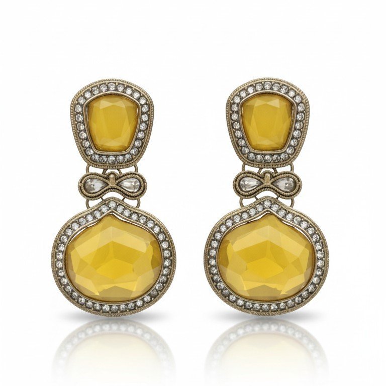Yellow Cat’s Eye Stone and Crystal Jhumka