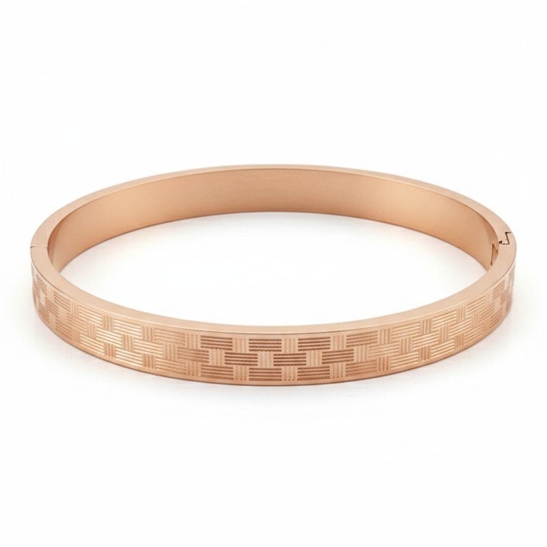 This collection features sleek, minimalist cuff bracelets designed for the modern man. Each piece is crafted from durable, highly polished or matte-finished metal, with a secure hinge or opening mechanism for easy wear. The bangles share a bold, substantial width that makes them perfect for wearing alone as a statement piece or stacking with a watch. The finishes range from classic, unadorned black and rose gold to subtle, engraved patterns like geometric keys and woven textures, offering a contemporary edge to any outfit.