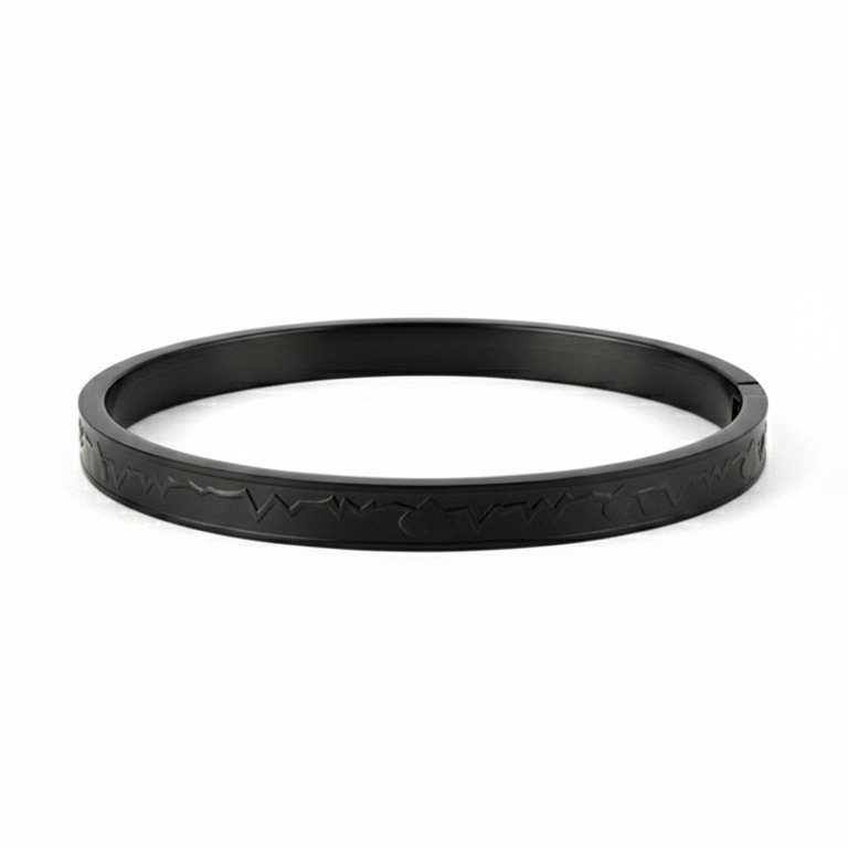 This collection features sleek, minimalist cuff bracelets designed for the modern man. Each piece is crafted from durable, highly polished or matte-finished metal, with a secure hinge or opening mechanism for easy wear. The bangles share a bold, substantial width that makes them perfect for wearing alone as a statement piece or stacking with a watch. The finishes range from classic, unadorned black and rose gold to subtle, engraved patterns like geometric keys and woven textures, offering a contemporary edge to any outfit.